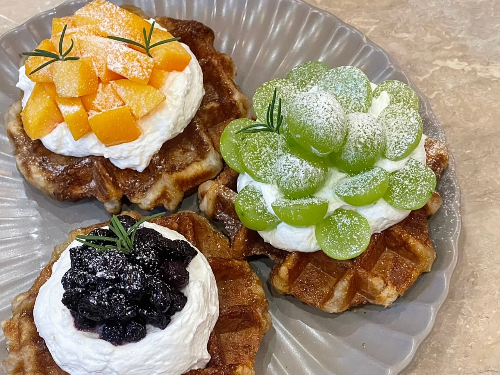 - 생크림 생딸기 와플대표 8,900원 부드러운 크림과 생딸기가 듬뿍 올라간 맛없없 조합 와플